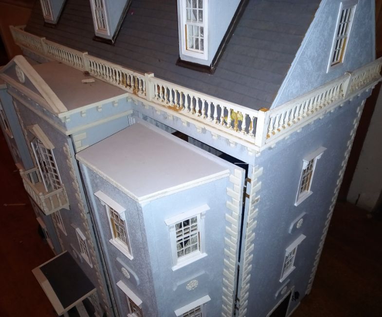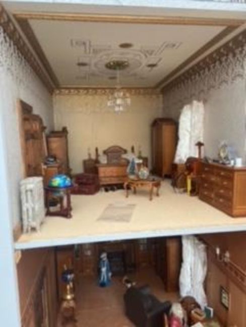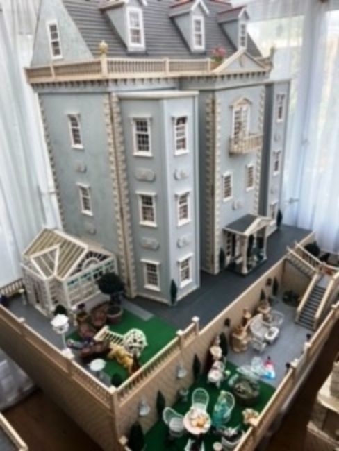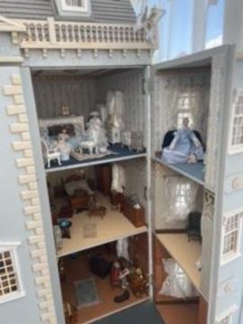 Doll's House - Large Georgian Manor With Garden - a Georgian style dolls house in the form of a large manor with additional two-tier garden and orangery. The large house comprising of three tiers, with opening bay-fronts. Mounted on a custom made garden base, with additional front garden area. Fully furnished, as per the images. Measurements (of just the house, not including the garden); H140cm x W123cm x D85cm.IMPORTANT NOTES: photographs of the house have been supplied by the vendor, prior to the items being packed away into boxes. East Bristol Auctions does not guarantee the contents, nor the condition of contents as they have not been personally inspected by us. Condition of the exterior of each house may also  differ from images due to them having been moved and stored several times by the vendor after photography. Due to the fragile and large nature, some cosmetic damage should be expected. We are unable to guarantee condition, irrespective of images. Viewing is strongly recommended. Some of the houses have been partially dismantled in order to move them, and many of them come apart for ease of transport. Each house remains sold strictly 'as is', although generally, all are in good physical condition but require minor repair to some fragile / protruding elements.DELIVERY / COLLECTION - Nationwide Delivery is available on this lot, please contact us to arrange a quote. Anyone wishing to collection, please note this lot is stored in our Bath storage site, and collection will need to be arranged from there (location given once payment received