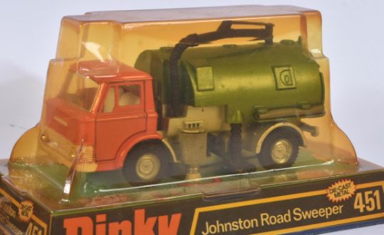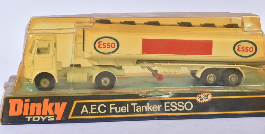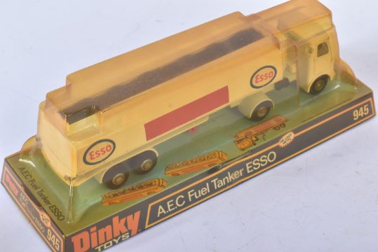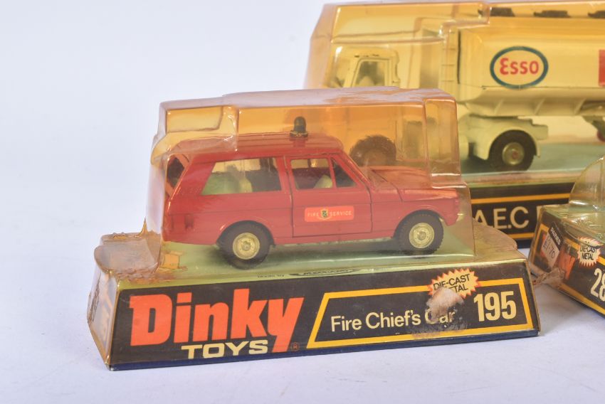 A collection of x4 vintage Dinky Toys boxed diecast models comprising; 945 A.E.C Fuel Tanker Esso, 195 Fire Chiefs Car, 287 Police Accident Unit and 451 Johnston Road Sweeper. Models appearing VG+ within original blister pack / boxes.