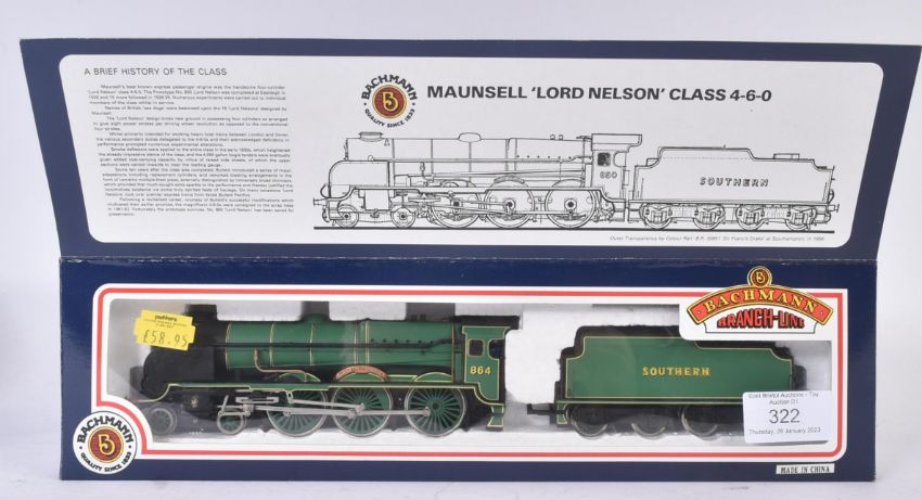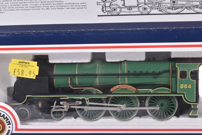An original Bachmann made Branch Line OO gauge model railway trainset locomotive engine No. 31-401 Lord Nelson Class 4-6-0 864 'Sir Martin Frobisher ' in SR malachite green. Housed within the original box with paperwork.