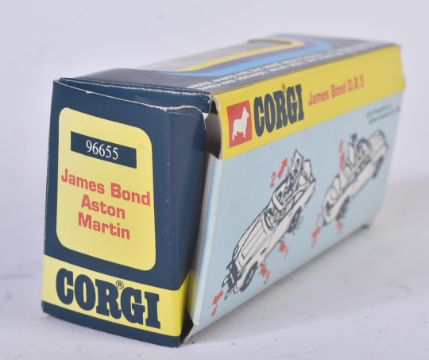 An original vintage Corgi 007 James Bond boxed diecast model No. 96655 Aston Martin D.B.5 complete with Top Secret instructions, passenger figures, unused sticker decals and certificate. The model appearing mint, still attached to inner packaging within a VG+ original box.