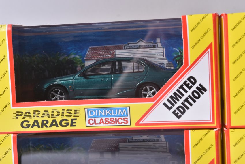 Dinkum Classics Paradise Garage - 1/43 Scale Precision Diecast - a collection of x4 Australian made Paradise Garage series diecast models. All Ford Falcon XR6 Limited Edition models. Ex-shop stock, mint, as new.