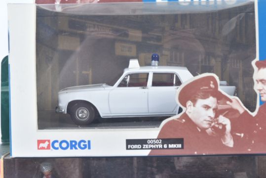 Two Corgi made TV and film related diecast models comprising 04441 The Italian Job Mini with driver figure and gold bars and 00502 Z Cars Ford Zephr 6 MKIII. Contents appearing unused within original boxes.