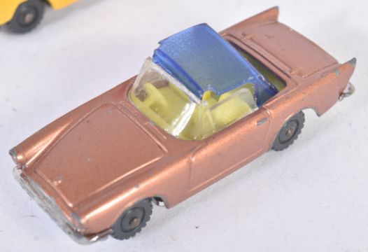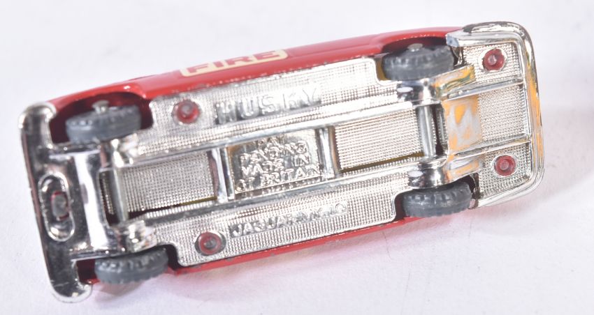 A collection of assorted vintage Husky made diecast model trucks, cars and other vehicles to include; Simon Snorkel Fire Engine, Ford Camper, Volkswagen Pickup, Cattle Truck, Sunbeam Alpine and others. Models ranging from G - EX.