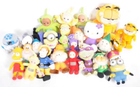 Teddy Bears - a collection of x 24 assorted teddy bears / plush toys to include: Garfield, Despicable Me, Minions, The Simpsons and others. Tallest measures approx. 55cm