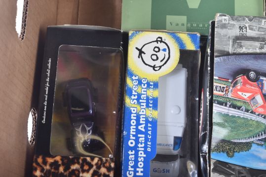 A collection of assorted boxed diecast model cars and other vehicles of various scales and makers. Examples to include; Corgi Mini Classic Edition, Lledo Vanguards 1/43 scale Austin A60 Cambridge, Vanguards Boy Racers Ford Popular Saloon and others. Contents appearing unused.