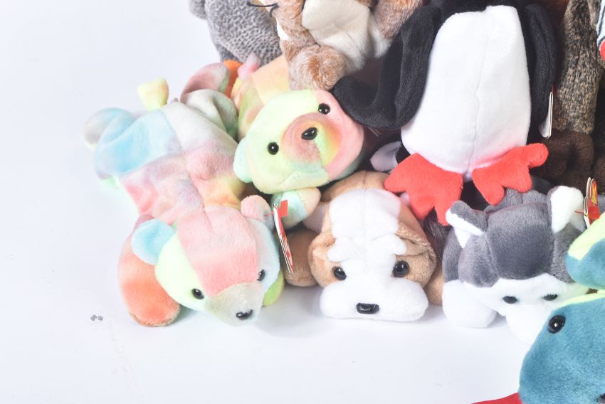 A large collection of vintage collectible TY Beanie Babies to include; Clubby, Jabber, Honks, Cheeks and others. All bears with swing tags to the left ear and original ' tush ' name labels.