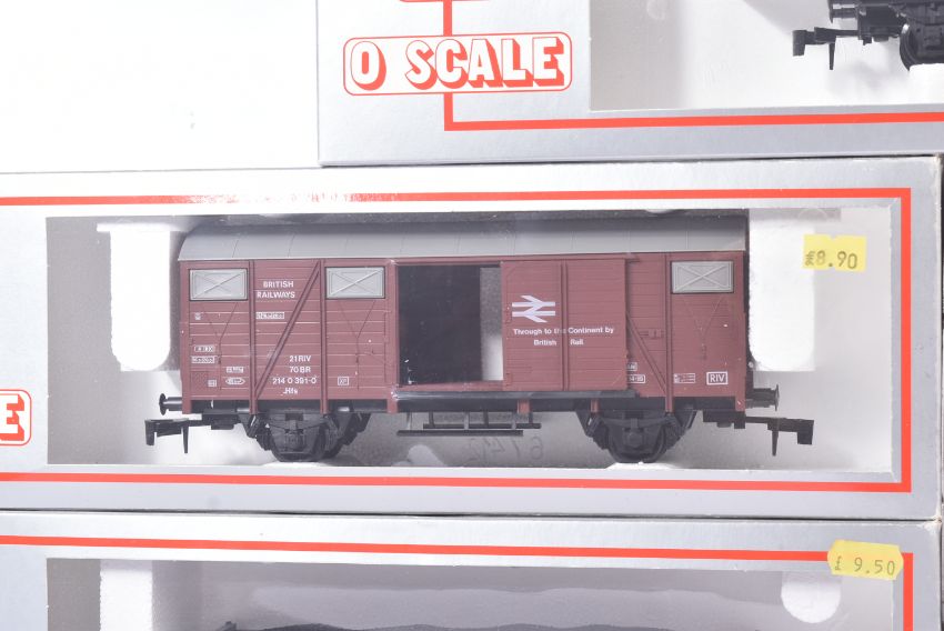 A collection of Lima O gauge model railway rolling stock wagons comprising; 16T Mineral Wagon Kendall & Co, 20T Toad Brake Van GW, LWB Mineral Wagon 1879 in NCB Grey and others. Housed within original boxes.