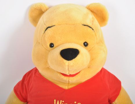 A gigantic Winnie the Pooh teddy bear / plush toy, sporting his customary red t-shirt. Measures approx. 87 cm