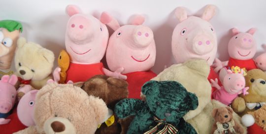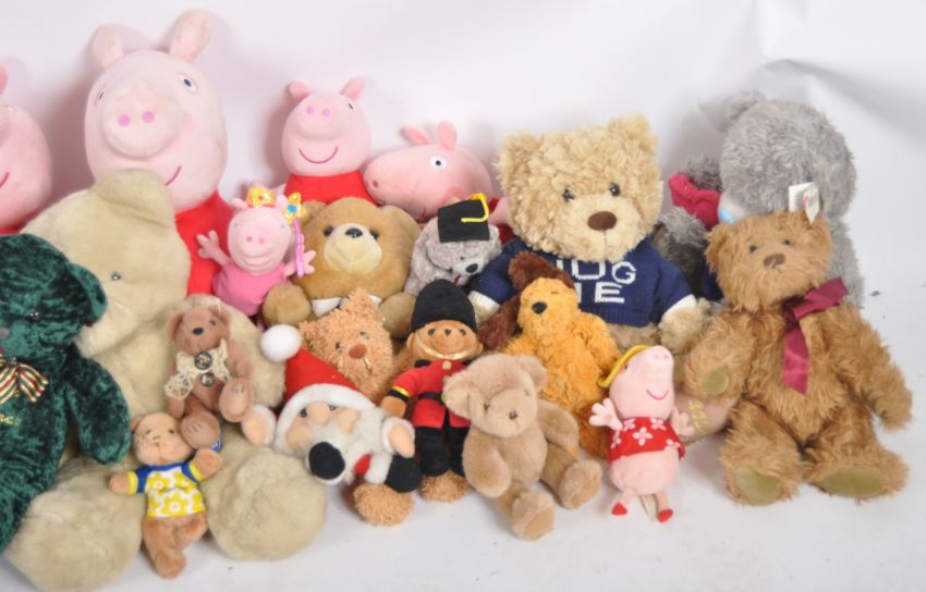 Teddy Bears - a collection of x 33 assorted teddy bears / plush toys to include: Peppa Pig, Jade, Skin, Gregory, Toyland and others . Tallest measures approx. 47cm