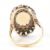 An early 20th Century opal and diamond ring. The ring set with an opal cabochon exhibiting a full spectrum play of colour, framed by pavé set rose cut diamonds in  an oval mount to plain band. French control marks to exterior of band swan and owl. Weight 4.9g. Size O. The head measures approx 2.5 x 1.5cm. Opal measures approx 2.8 x 9.1 x 3mm.
