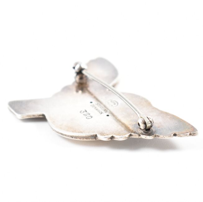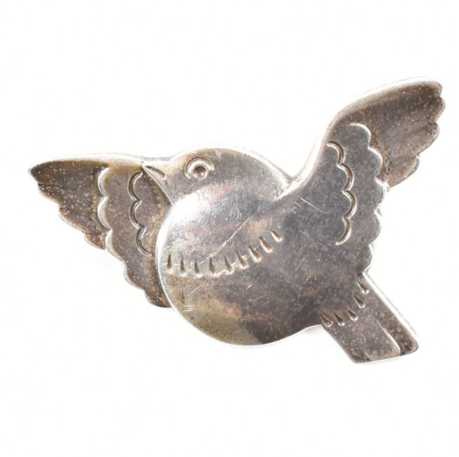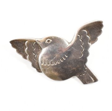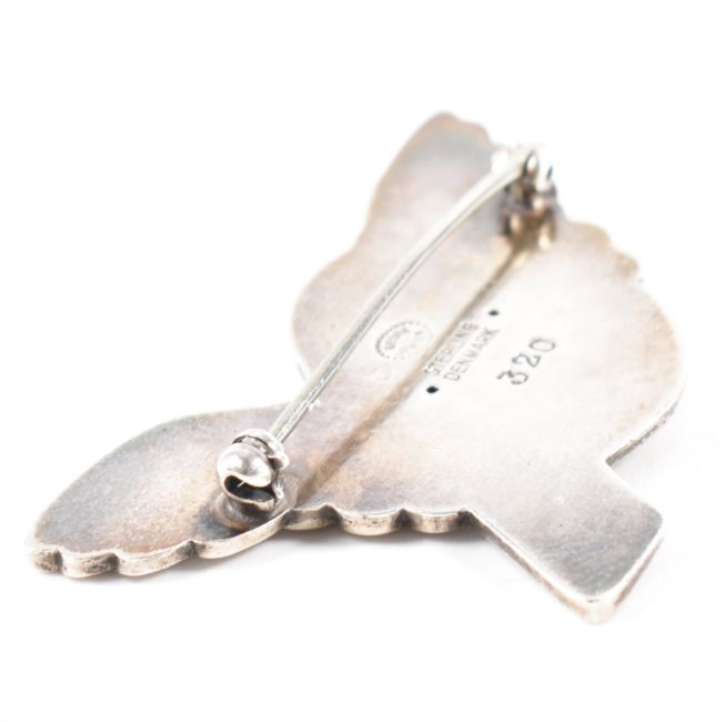 A Georg Jensen Danish silver dove brooch. The brooch in the form of a bird with outstretched wings and moulded details. Marked Georg Jensen, Sterling Denmark, 320 to verso. Measures 4.2cm wide. Weight 6.4g.