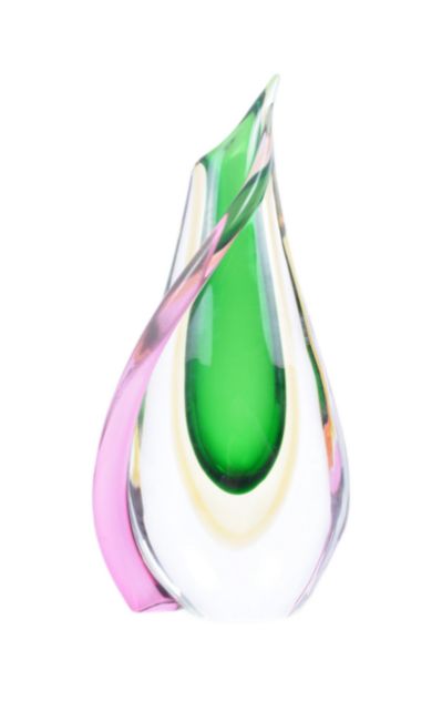 Murano - Formia Range - An original retro vintage 20th Century Italian studio art glass vase by Murano. Sommerso cased body with central green with citrine burn, pulled lipped top and pink applied stem. Label to underside. Measures approx. 41cm tall.