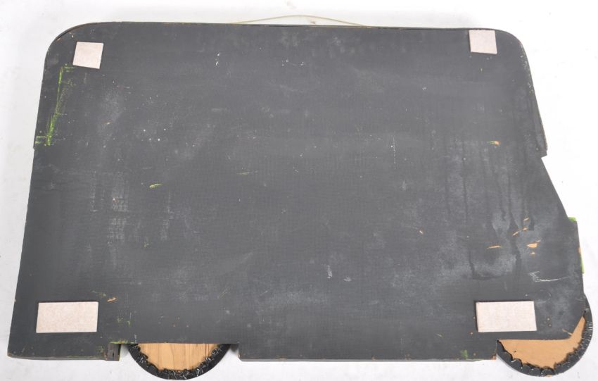 Of Bristol / Local interest - A retro vintage 20th century wooden scratch build advertisement sign in the shape of a green bus. It measures approx. 96 x 65cm.