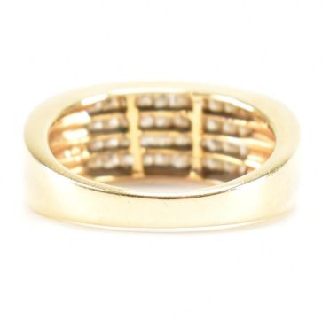A vintage 18ct yellow gold & diamond cluster ring. The ring set with a cluster of square cut diamonds to the rectangular head on a tapered shank. Marked 750. Stones measure approx 1.6 x 1.6 x 1.2mm. Total weight approx 7.3g. Approx size O.5.