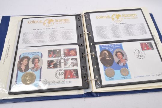 A collection of 20th century cover coin first day cover sets. To include 0245/1000, Isle of Man and Guernsey Silver Coin first day cover, 20th Birthday of the Queen Mother, 10th Royal Wedding Anniversary no.0260, 40th Anniversary of the Accession to the Throne, Farewell to the Florin, The British European Presidency First Day Cover, Isle of Man '100 Days to Go' coin cover, Great Britain and Falkland Islands Coin Cover, Gibraltar Golden Jubilee Coin Cover,The Golden Jubilee Five Pounds coin, The Golden Jubilee Isle of Man & Falklands.