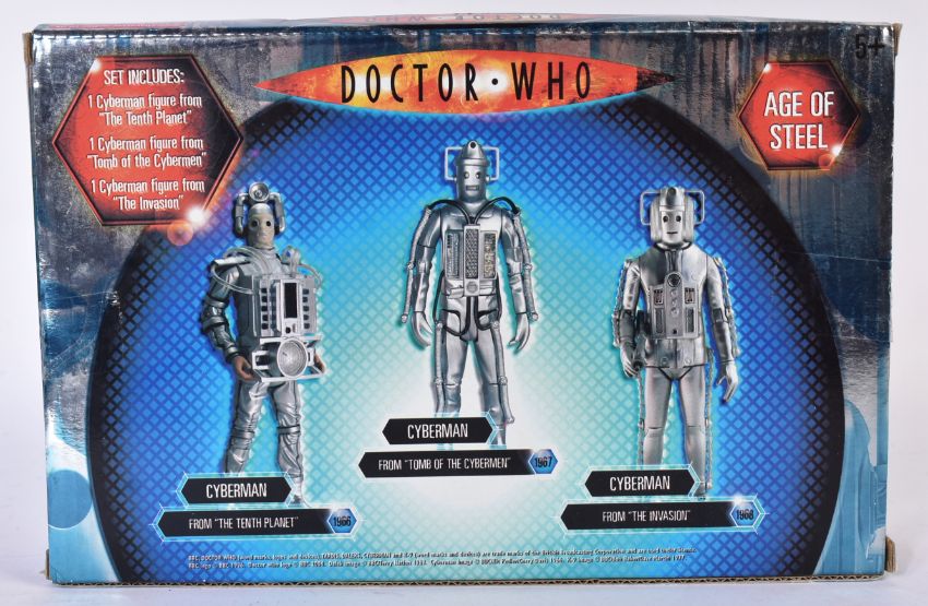 Doctor Who - Character Options - ' Age Of Steel Cyberman Figure Set ' action figure presentation set. Features three figures from various Dr Who episodes. Box sealed, contents mint and unused.