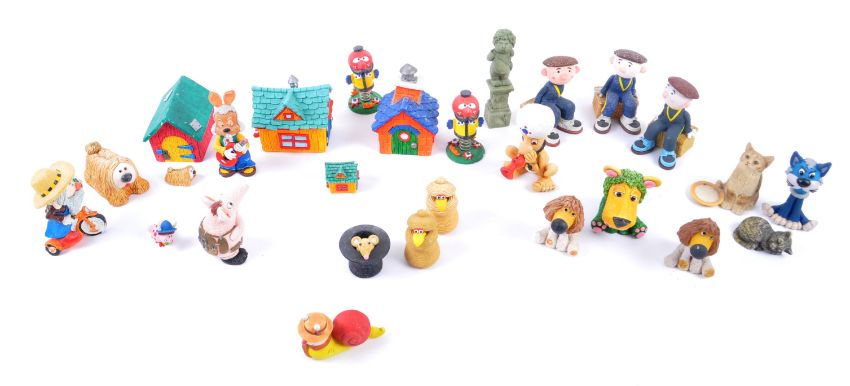 A large collection of Sugarlump Studio ceramics / pottery. Models are: Top Hat, Snake Basket, Zebedee, Paul, Dill the Dog, Parsley the Lion, Pashana Bedhi, Dylan, Brian, Dougal's Kennel, The Potting Shed, Buxton, Old Mr MacHenry, Zebedee's House, Small Clanger, Dougal, Cherub, to include others and duplicates.