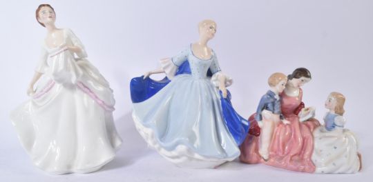 Royal Doulton – Carol (HN2961), Bedtime Story (HN2059) and Dulcie (HN2305) - collection of three ceramic figures / figurines. All with maker's marks to base. Tallest approx 20cmCondition: all lots within this auction appear in excellent condition, with no visible damage or repairs present. However, this statement should not be considered a forensic report and buyers are politely reminded of the need to satisfy themselves as to such elements prior to bidding, and that all lots will remain sold 'as is'.