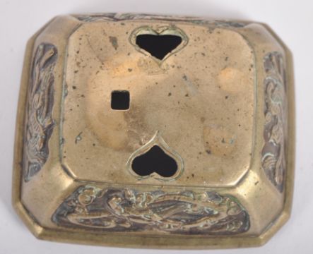 An early 20th century Chinese bronze censer. A highly decorated censer depicting a phoenix on both panels with repeated floral patterns and motifs, the lid with mounted posed dragon foo dog . Mounted on a raised plinth. Approximately 33cm tall.