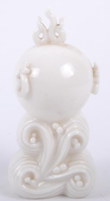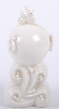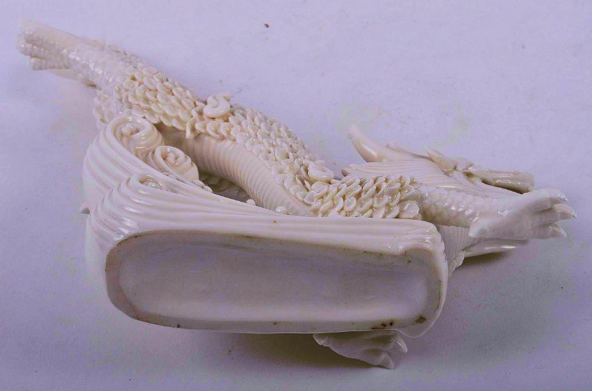 An early 20th Century Chinese Republic Period Blanc De Chine Dehua porcelain figurine in the form of a dragon with additional flaming pearl statuette. Measures approx; 20cm tall.