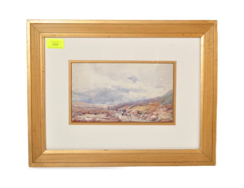 G Souter - An early 20th century watercolour painting by G Souter. To depict a highland landscape with figures in the foreground. Framed and glazed. Measures approx; 33cm x 42cm.
