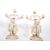 A pair of 19th century German bisque / porcelain Sitzendorf manner candelabras in the manner of two courting couples in Regency attire hand painted gilded details. Measures 40cm tall.
