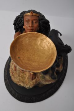 A NOS (New Old Stock) large Country Artists limited edition No. 17 of 400 'Priestess of the Rains' resin sculpture figure by Richard Gonzalez. The sculpture a priestess with bowl in hands with black panthers. On tribal carved plinth. It measures approx. 40cm tall. With framed label. In original box.