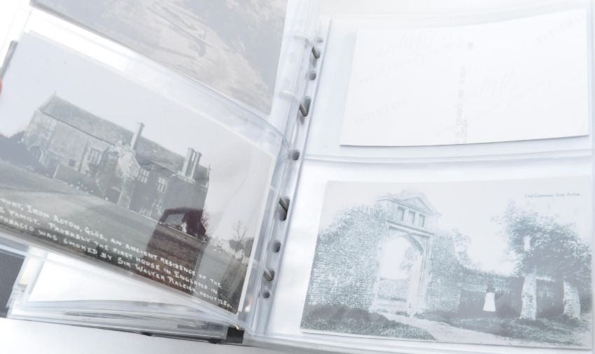 Postcards - Local Interest - Iron Acton /Stoke Gifford - a well presented postcard and photograph album. To include pictures of houses, scenic views, The Green, Algars Manor,  The Old Mill & Bridge, The Weir, Street, The Cross, St Michaels Church & Vicarage & more. From a private collection of a local historian Ian Bishop. Approximately 50 postcards.