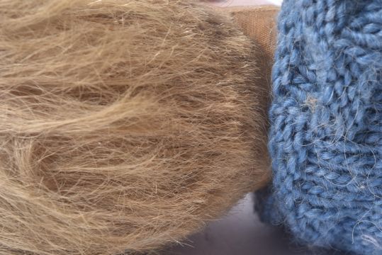 An early 20th Century German Kathe Kruse doll. Firmly stuffed cloth body with jointed limbs, painted papier mache / composition head and glued wig hair. Measures approx 48cm.