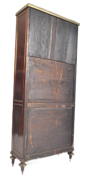 A late 19th century French Empire Factory - office barrister's / lawyer's mahogany bookcase cabinet chest of drawers. Of upright form having a white marble top with a pierced  brass gallery above a series of gilt tooled leather boxes drawers. All raised over a twin cabinet door base. Measures approx. 163cm x 73cm x 26cm.