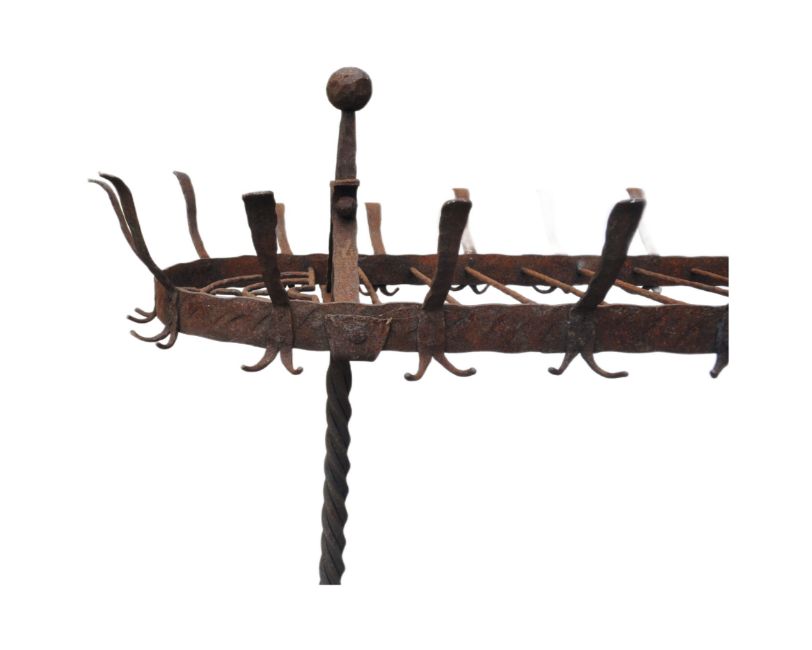 A large and impressive 19th century black forest cast iron coat & stick / hall stand. Of heavy cast and wrought iron, the large stand ( in two parts) being set over an ovoid shaped base with inset galvanised metal tray rising up to a heavy set twist column rising through to ovoid shaped top rail adorned with original hooks all around. Wall mounted to one end. The hallstand in two parts. Attached in images to non associated pole for reference and image purposes