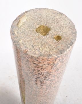 A pair of believed early 20th century large pink granite marble column plinths. Each with square terraced stone bases rising to marble cylindrical tall columns with plain tops above. Measures approx. 134 x 31 x 31cm.