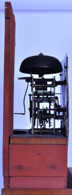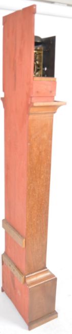 An 18th Century George II Longcase clock by Moses Bradshaw of Charlton Kings Cheltenham Brass face with etched decoration depicting house and sailing boat with faceted hands and Roman Numeral Chapter Ring. Set to a mahogany case with glazed hood door. Measures approx; 193cm x 40cm x 23cm.