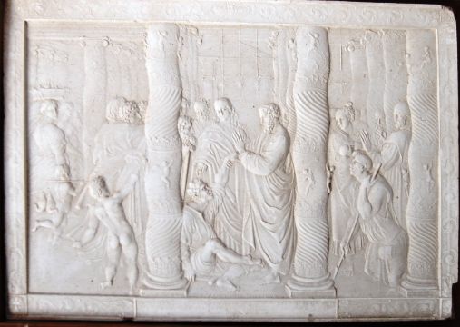 John Henning (Scottish 1771-1851) - A rare set of seven white plaster relief plaques after Raphael depicting famous paintings. 17.5cm x 26cm contained within original trays in a fall-front box.