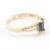 A Polish hallmarked 14ct yellow gold, blue & white stone ring. The ring having a marquise cut dark blue stone in prong basket setting with split shoulders set with accent diamonds on tapering shank. Hallmarked with polish 14ct gold mark together with 585 & 9b. Central stone measures approx 8x4x2.6mm. Total weight approx 2.2g. Approx size N.5.