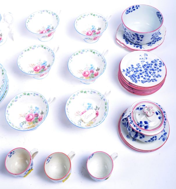 An early 20th century Shelley part tea service in chintz repeating pattern Rd No. 771299. The service comprising tea cups, sugar bowl saucers, plates etc. All marked to the base for Shelley. Creamer measures 9cm high