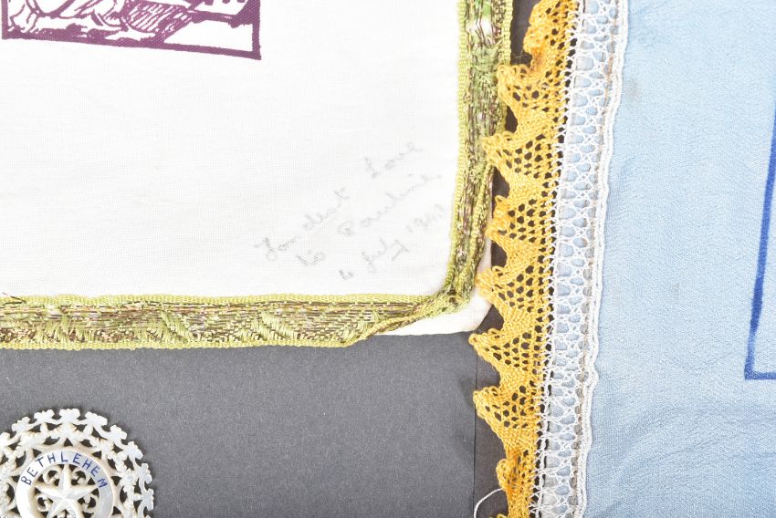 Desert Rats - a collection of WWII Second World War interest items related to the Desert Rats. Comprising a 'Rats Of Tobruk Association' cloth blazer patch, x2 large silks, and a carved 'Bethlehem Star' badge.