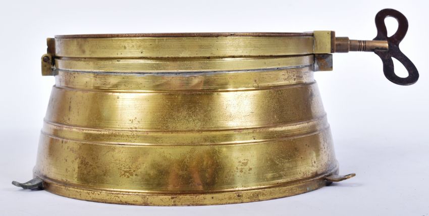 An original WWII Second World War Third Reich Nazi German Kriegsmarine U-Boat bulkhead clock. Arabic numerals, with Eagle Swastika above 'M'. Serial number 18180 above N. Key present and appears in basic working order.