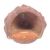 A nineteenth century Victorian terracotta wall hanging planter, formed as a stylised cherub's head, with wall hanging hole to verso, curls of hair, painted eyes in blue, black and white, and a concerned expression, mounted upon C scrolls. Damage to back, with a visible crack & glue repair to the base of the wall mount. Measures 25cm x 23cm x 15cm approx.
