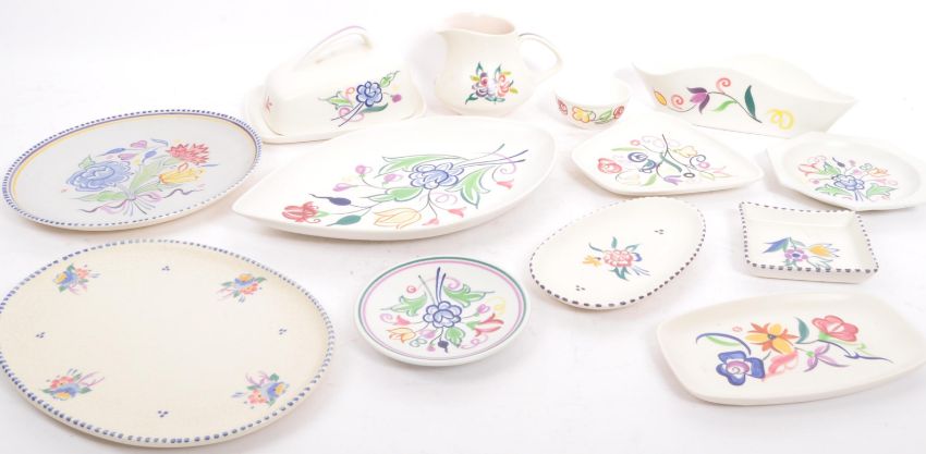 Poole Pottery - Traditional Ware - An assortment of vintage 20th century circa 1950s & later Poole pottery ceramic items from the traditional ware range. The lot to include a various shaped dishes centrepieces, trinket dishes, single handled jug, shaped troth vase & butter dish All marked & signed to base. Largest measuring  30 x 20cm