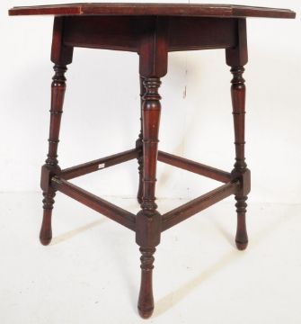 A mid 19th century, Liberty style english octagonal oak table, with carved floral and foliate top. With turned legs and rounded feet. Measures approx. 61cm x 56cm x 56cm.