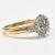 A hallmarked 18ct yellow gold & diamond cluster ring. The ring having a cluster of round cut diamonds to accent diamond set shoulders & tapered shank. Hallmarked for London together with common control mark, also marked 750, MDR & 0.50 HPJ. Total weight approx 3.7g. Approx size O.5.