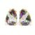 A pair of 9ct yellow gold, mystic topaz & diamond stud earrings. The earrings having a pear cut prong basket set multi coloured mystic topaz with a band of white gold atop set with an accent diamond to straight post backs & butterfly clasps. Marked 375. Total weight approx 2.1g. Measure approx 1cm.