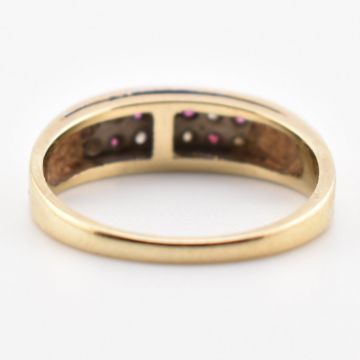 A hallmarked 9ct gold ring and crab pendant charm. A hallmarked 9ct gold half hoop ring set with ruby and diamond size J.5. A hallmarked 9ct gold crab pendant charm, measures approx 1.3cm. Total weight 3.7g