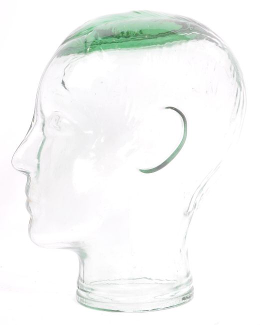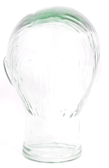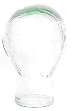 A vintage retro 20th century circa. 1960's clear glass milliners head bust having moulded features to face.