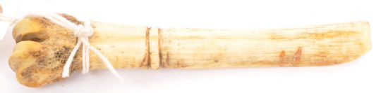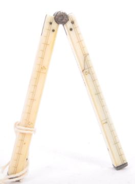 A group of three mid 19th century and later carved bone items. Comprising of S. Mordan & Co Makers 15cm folding ruler, apple corer 11cm, and a carved archer warrior 8cm.