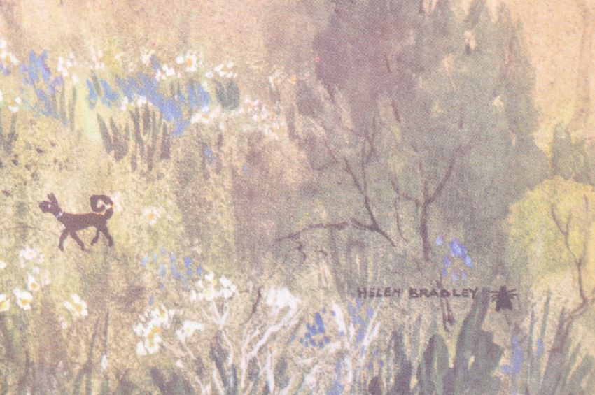 Helen Bradley - A 20th century Helen Bradley watercolour painting print to depict a group in British forest setting in leisure dress. Framed and glazed.