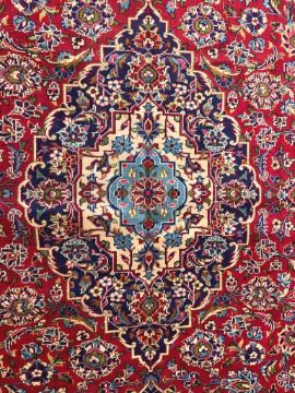 A 20th century central Persian Kashan carpet. The rug having central medallion on red ground surrounded by intricate foliates and hayat agaci motif surrounded by a geometric border. Measures approx. 280 x 170cm.