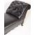 A Victorian 19th century faux leather chaise lounge day bed. Of long rectangular form with curved button back rest on a long bed raised on turned wood supports. Measures approx 68 x 182 x 70cm.