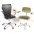 Two vintage 20th century swivel rotating office desk chairs. One having a green upholstered cushioned fabric on a metal frame atop of castors. Together with a black vinyl leatherette office chair with padded arm rests and shaped back rest on castors. Measures approx 98 x 54 x 54cm.